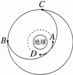 练8 (2023·南京模拟)(多选)中国空间站在轨运行周期为 $1.54\ h$,地球半径为 $6400\ km$,重力加速度取 $9.8\ m/s^{2}$。在 2022 年,曾经两次遭遇星链卫星的恶意靠近,为避免不必要的损失,中国空间站不得不通过变轨积极规避。首先变轨到更高的轨道($A$ 到 $B$ 过程),待星链卫星通过之后,再回到原运行轨道($C$ 到 $D$ 过程)。已知卫星运行方向与地球自转方向相同,下列说法正确的是(