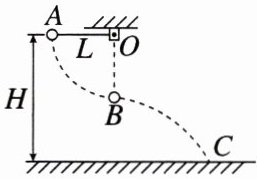 (2)根据题意可知,小球运动到B点时,绳子的拉力达到最大值$3mg$,在B点,由牛顿第二定律有$3mg - mg = m\frac{v_{2}^{2}}{L}$,解得$v_{2} = \sqrt{2gL}$,绳子断了后,小球从B点做平抛运动,则有$H - L = \frac{1}{2}gt^{2}$,$x_{CO} = v_{2}t$,解得$x_{CO} = 2\sqrt{L(H - L)}$.
