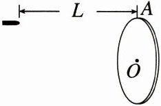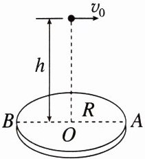 例 5 (2023·新疆模拟)一位同学玩飞镖游戏,已知飞镖距圆盘为 $L$,对准圆盘上边缘的 $A$ 点水平抛出,初速度为 $v_{0}$,飞镖抛出的同时,圆盘以垂直圆盘且过盘心 $O$ 点的水平轴匀速转动。若飞镖恰好击中 $A$ 点,空气阻力忽略不计,重力加速度为 $g$,求: