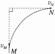 练2如图所示,一物体在水平恒力的作用下沿光滑水平面做曲线运动,当物体从$M$点运动到$N$点时,其速度方向恰好改变了$90^{\circ}$,则物体在$M$点到$N$点的运动过程中,以下说法正确的是(