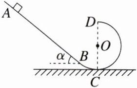 由动能定理得$mgl_0\sin \alpha - \mu mg\cos \alpha \cdot l_0 - mgR(1 + \cos \alpha) = \frac{1}{2}mv_D^2$,代入数据联立