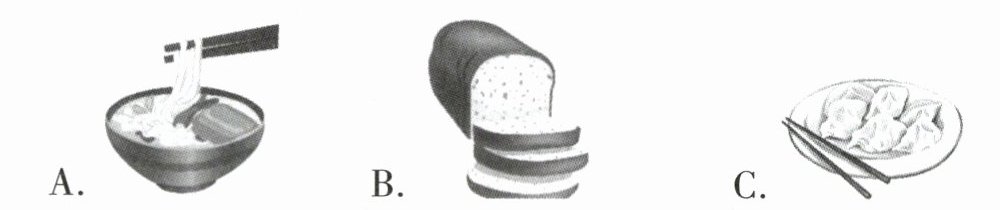 解析:听力原文中,第一题男士说早餐想要一些面包;第二题男士说伦敦今天阳光明媚;第三题苹果20元一公斤,男士买两公斤,所以要付40元;第四题男孩说他通常和女士一样骑自行车上学;第五题女士让男士关掉电视去睡觉,男士答应,可推测是母子关系。