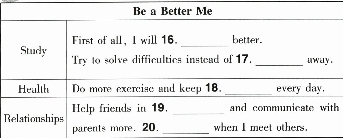 答案:16. act 17. running 18. happy 19. need 20. Smile