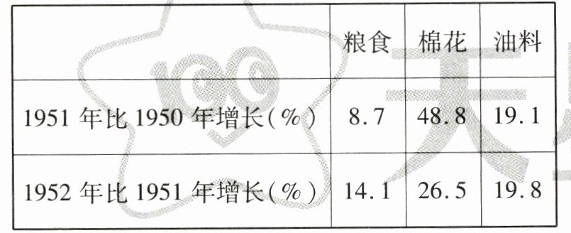 根据题干中“1950年至1952年我国主要农产品产量增长情况”和表格中的数据可知,1950—1952年,我国主要农产品产量增长较快。