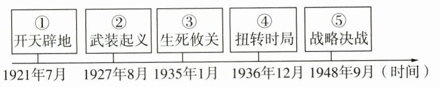 (1)标题:中国共产党领导的新民主主义革命的主要历程。(1分,符合题意,其他答案言之成理亦可)④;②⑤;①③。(3分)