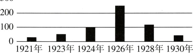 解析:第一步,分析材料。根据柱状图中的数据可知,1926年中国共产党在主要城市中发起成立的工人协会数量最多,1926—1930年中国共产党在主要城市中发起成立的工人协会数量急剧下降。