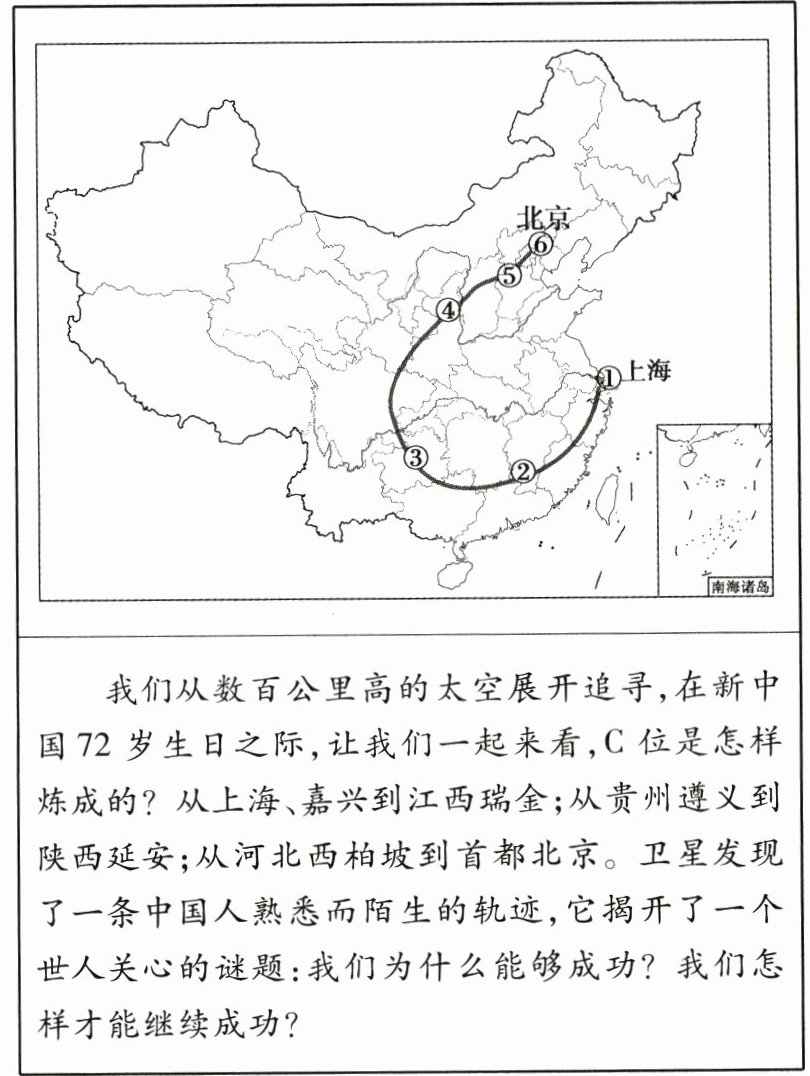 (2)足迹见证历史,足迹反映变迁。从材料中选择中国共产党相邻两处的奋斗足迹加以解读。(6分)