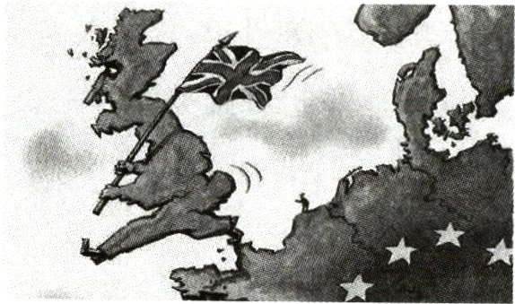 15 A 根据材料可知,漫画反映的是英国脱欧。欧洲联盟是欧洲一体化进程中成立的重要组织,旨在加强成员国之间的经济、政治和社会合作。英国作为欧洲的重要国家,其退出欧盟无疑会对欧洲的一体化进程产生重大影响,A正确。