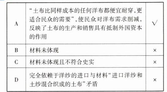 4. 1888年广州海关贸易报告称:“洋纱供应大量增加,造成对洋布的需求削减,进口洋纱和土纱混合织成的土布比同样成本的任何洋布都便宜耐穿,更适合民众的需要。”这说明土布的生产和销售( )