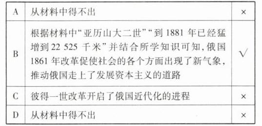 12. 亚历山大二世即位时,俄国全国铁路总长不过965千米,到1881年已经猛增到22 525千米。这说明亚历山大二世改革 ( )
