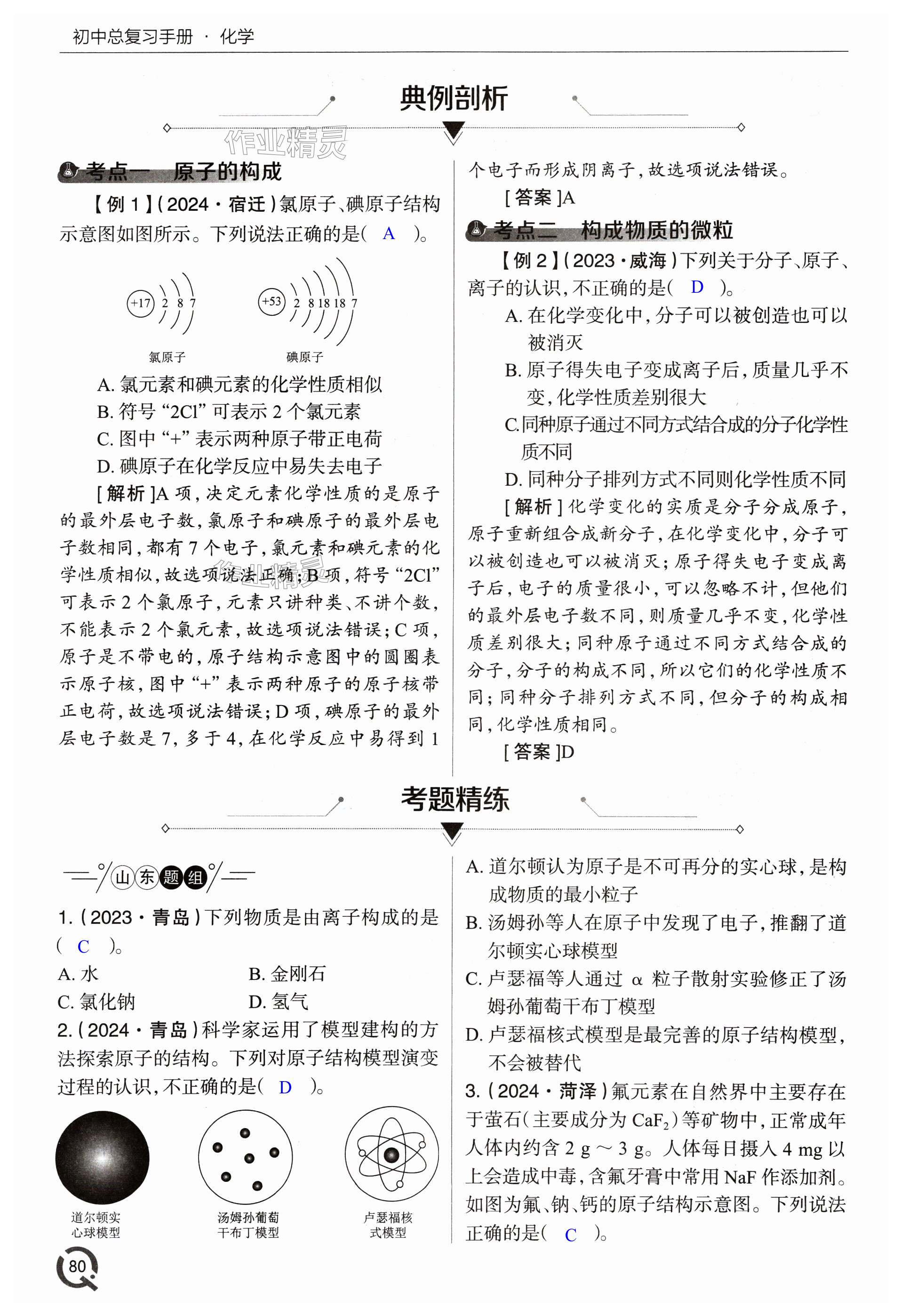 注:目前有些书本章节名称可能整理的还不是很完善,但都是按照顺序排列的,请同学们按照顺序仔细查找。练习册 2025年初中总复习手册青岛出版社化学 答案主要是用来给同学们做完题方便对答案用的,请勿直接抄袭。
