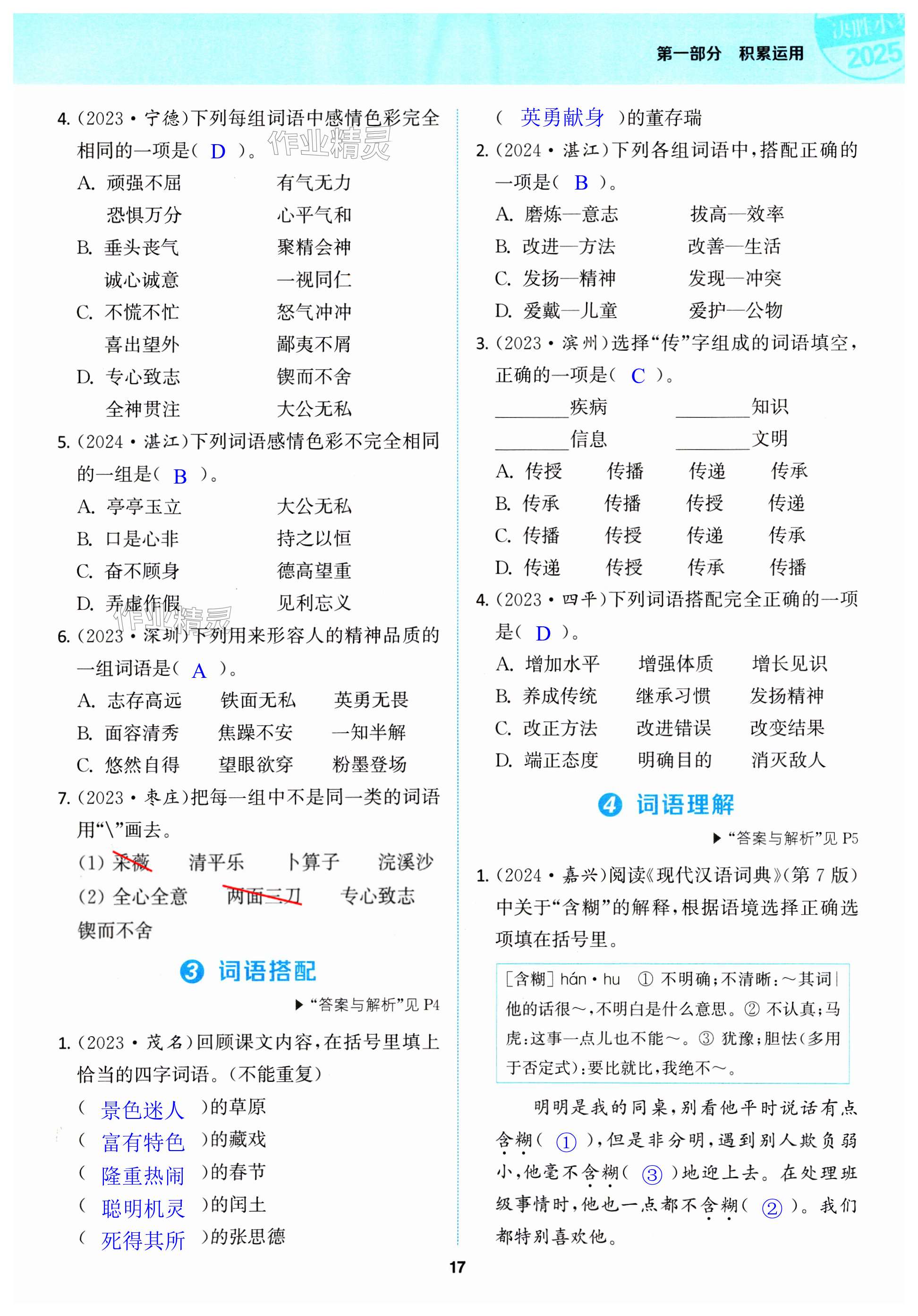 注:目前有些书本章节名称可能整理的还不是很完善,但都是按照顺序排列的,请同学们按照顺序仔细查找。练习册 2025年通城学典小学毕业考试试题分类精粹语文 答案主要是用来给同学们做完题方便对答案用的,请勿直接抄袭。