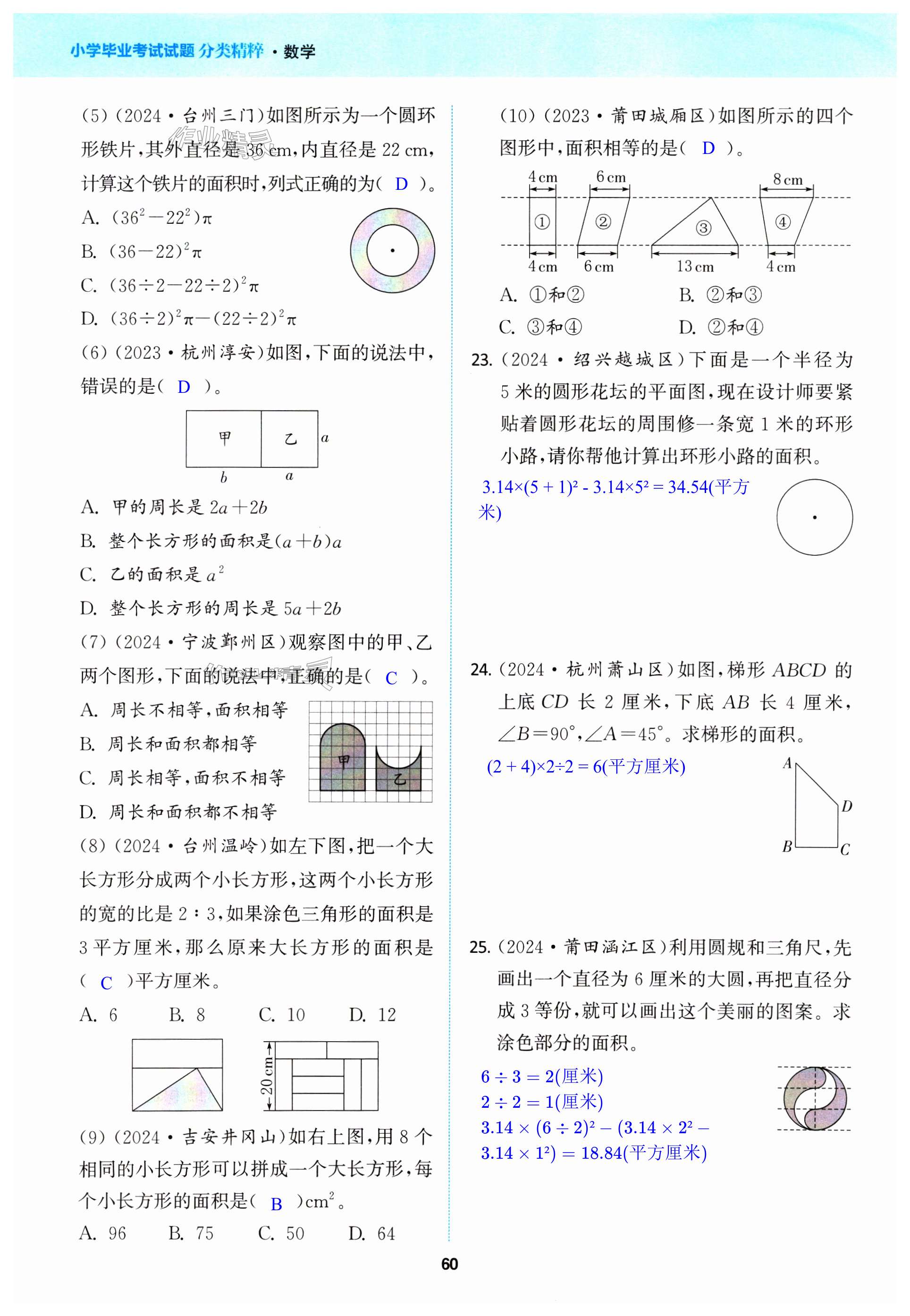 注:目前有些书本章节名称可能整理的还不是很完善,但都是按照顺序排列的,请同学们按照顺序仔细查找。练习册 2025年通城学典小学毕业考试试题分类精粹数学 答案主要是用来给同学们做完题方便对答案用的,请勿直接抄袭。
