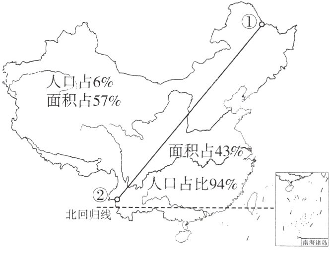 (2)图3中,①是黑龙江省的________市,②是________省的腾冲市。归纳我国人口分布特点,并从自然原因和社会原因两方面作简单分析。