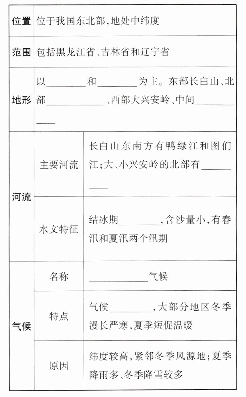 知识点②“白山黑水”——东北三省