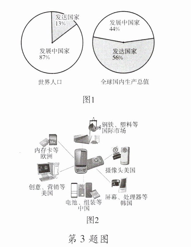 3. [2021·通辽]读图1和图2,下列关于地域发展差异叙述正确的是 ( )