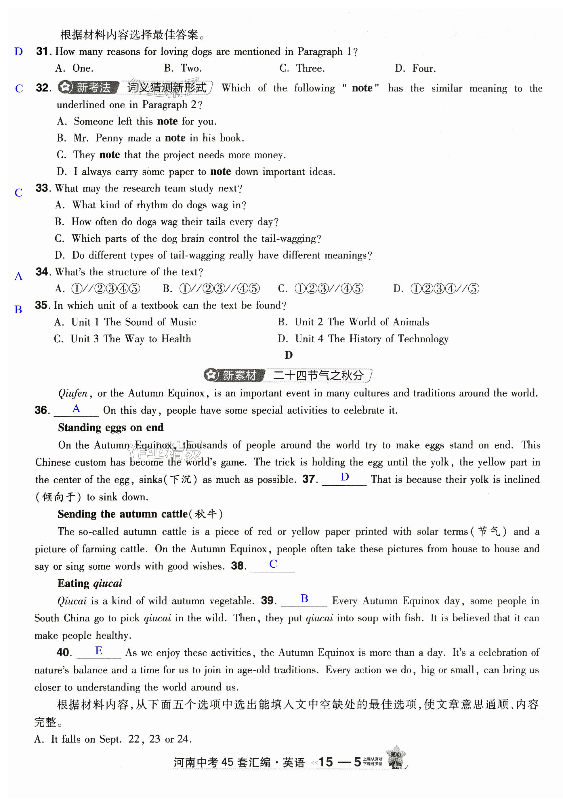 注:目前有些书本章节名称可能整理的还不是很完善,但都是按照顺序排列的,请同学们按照顺序仔细查找。练习册 2025年金考卷中考45套汇编英语人教版河南专版 答案主要是用来给同学们做完题方便对答案用的,请勿直接抄袭。