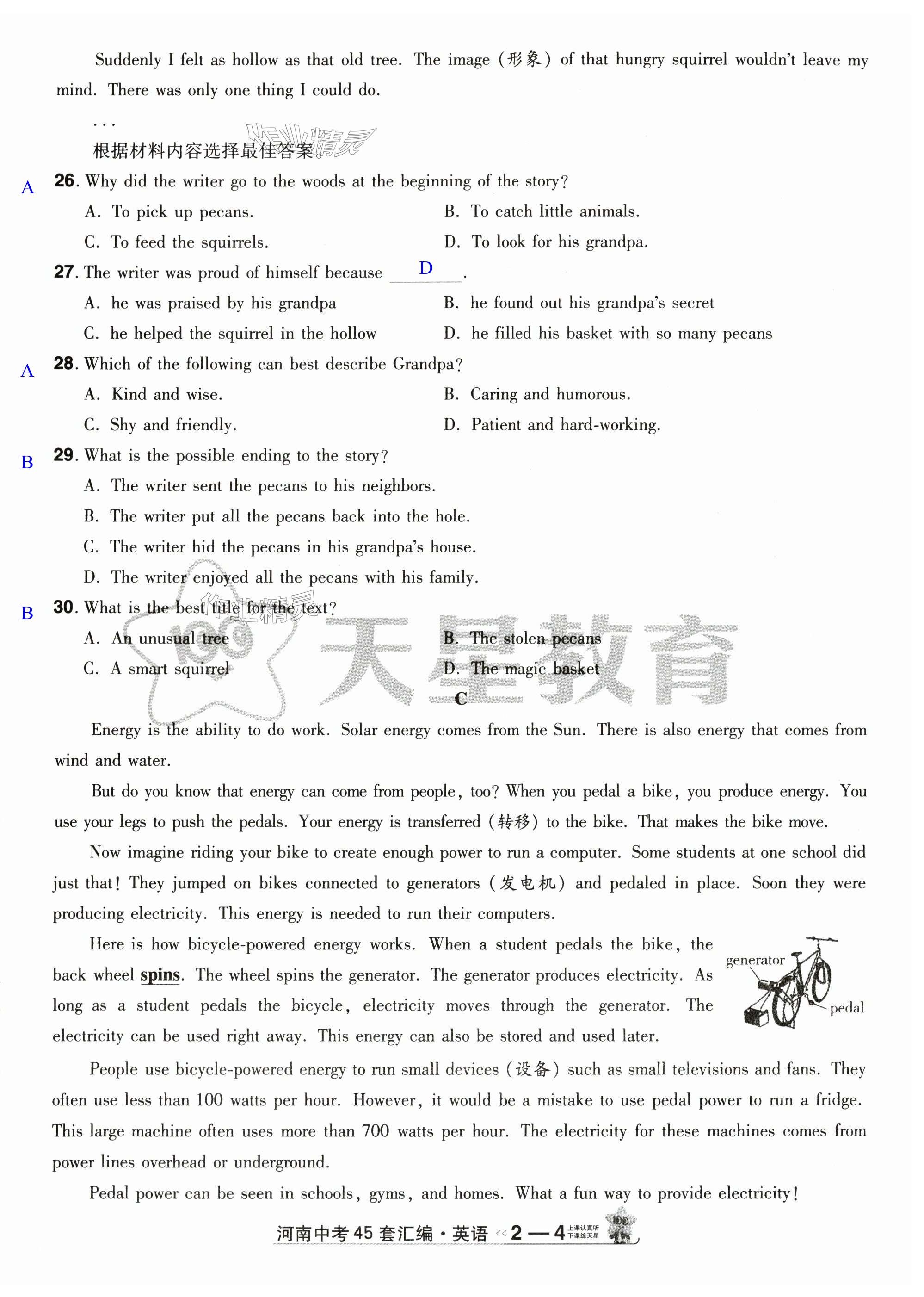 注:目前有些书本章节名称可能整理的还不是很完善,但都是按照顺序排列的,请同学们按照顺序仔细查找。练习册 2025年金考卷中考45套汇编英语人教版河南专版 答案主要是用来给同学们做完题方便对答案用的,请勿直接抄袭。