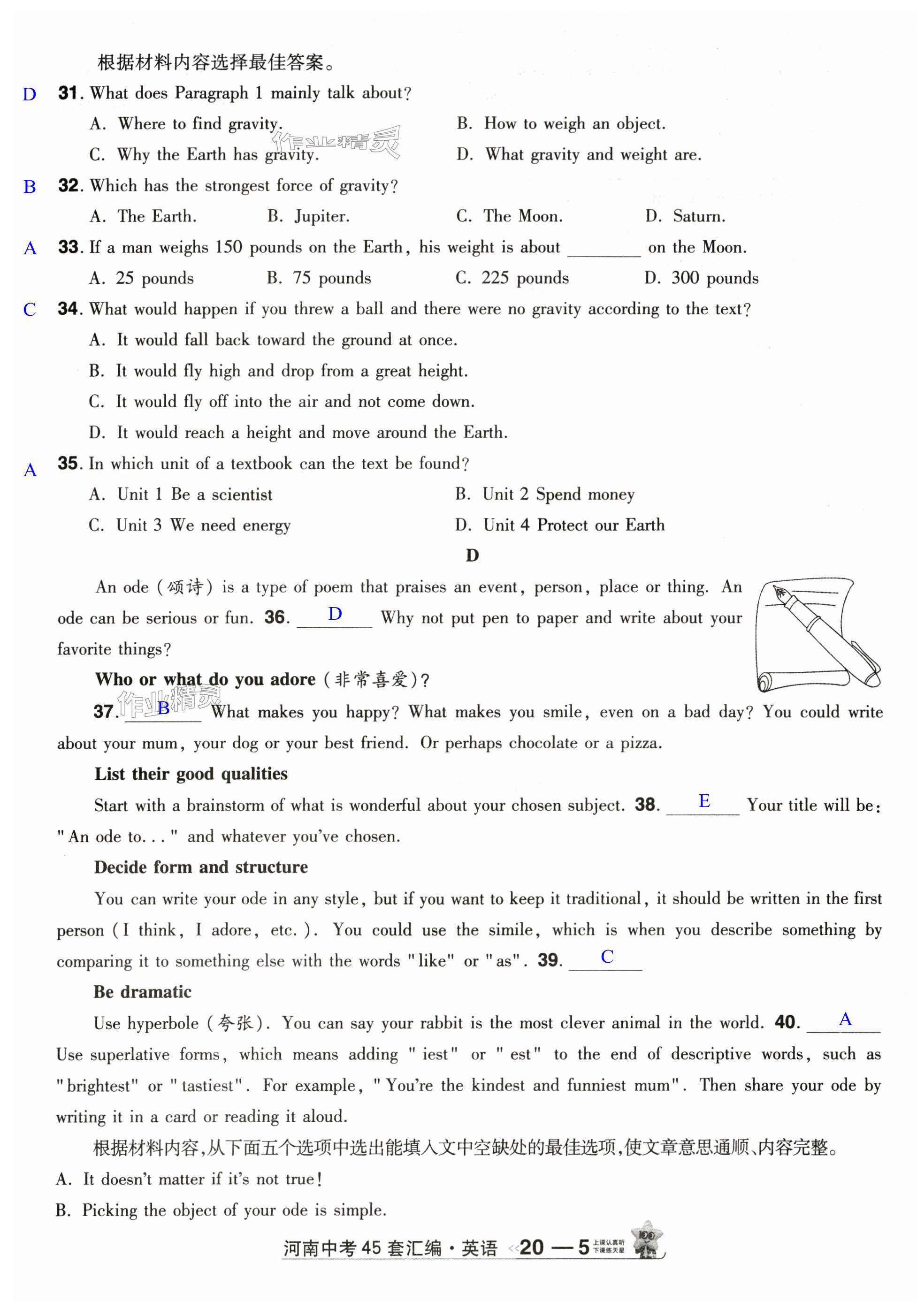 注:目前有些书本章节名称可能整理的还不是很完善,但都是按照顺序排列的,请同学们按照顺序仔细查找。练习册 2025年金考卷中考45套汇编英语人教版河南专版 答案主要是用来给同学们做完题方便对答案用的,请勿直接抄袭。