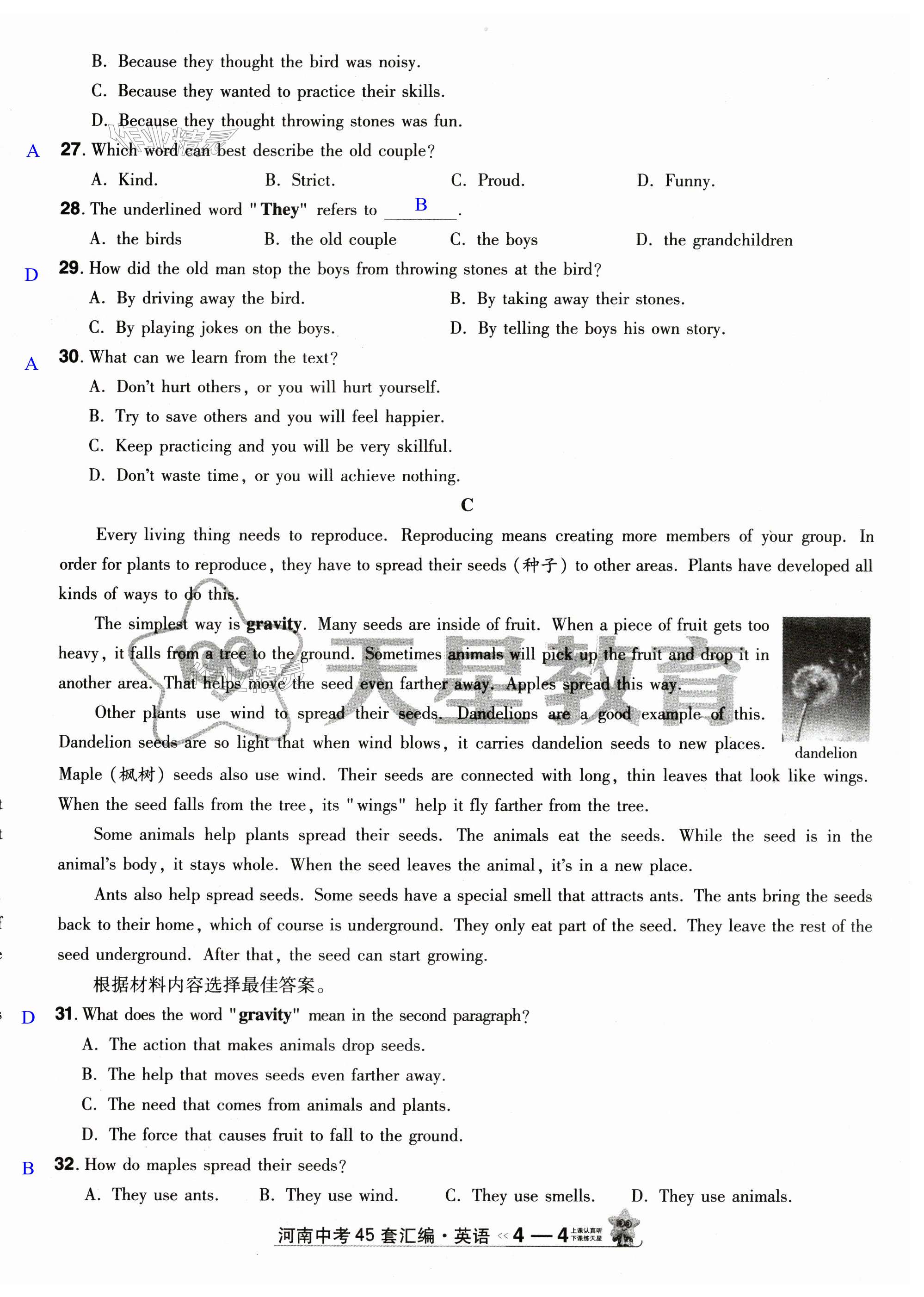 注:目前有些书本章节名称可能整理的还不是很完善,但都是按照顺序排列的,请同学们按照顺序仔细查找。练习册 2025年金考卷中考45套汇编英语人教版河南专版 答案主要是用来给同学们做完题方便对答案用的,请勿直接抄袭。