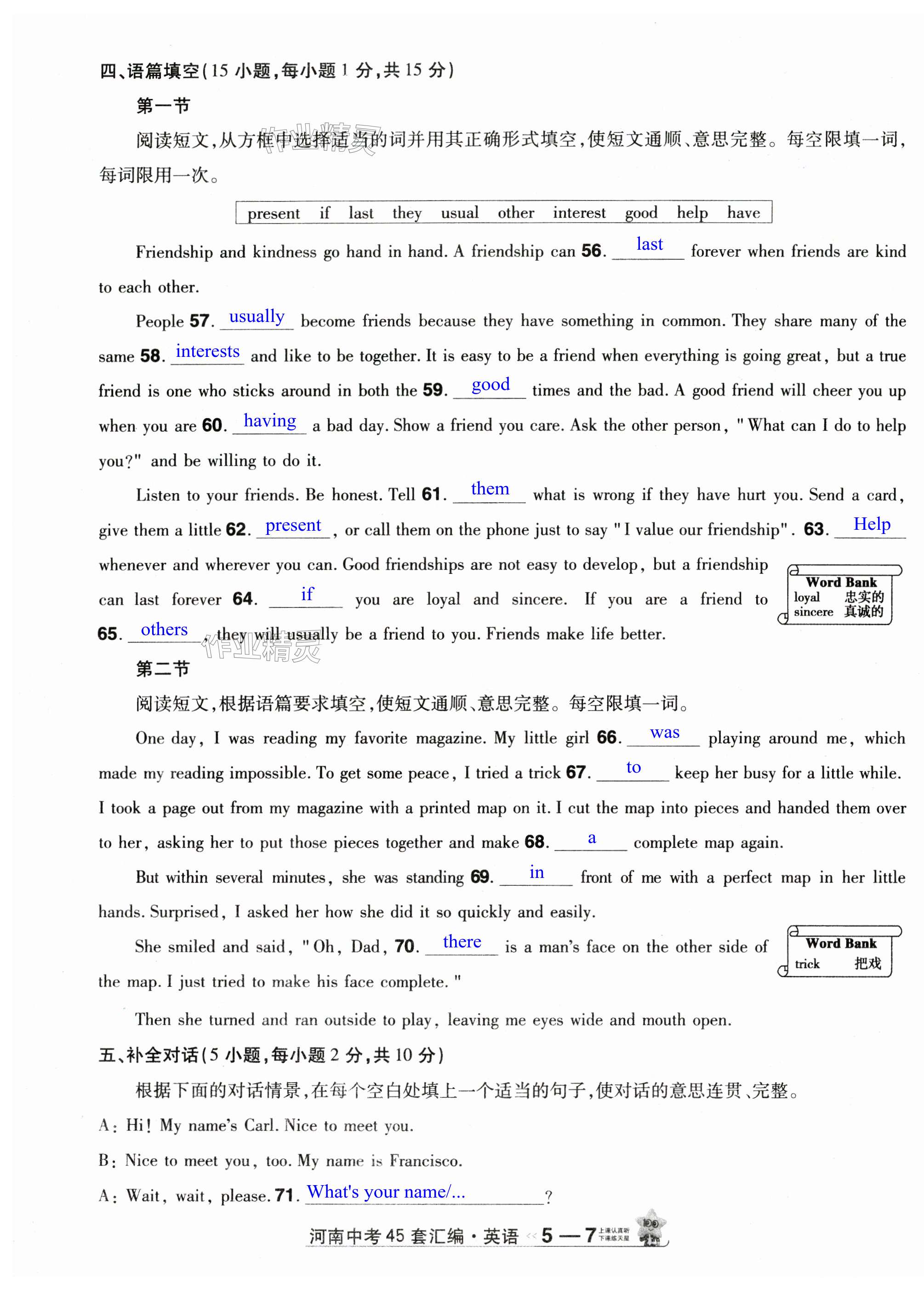 注:目前有些书本章节名称可能整理的还不是很完善,但都是按照顺序排列的,请同学们按照顺序仔细查找。练习册 2025年金考卷中考45套汇编英语人教版河南专版 答案主要是用来给同学们做完题方便对答案用的,请勿直接抄袭。