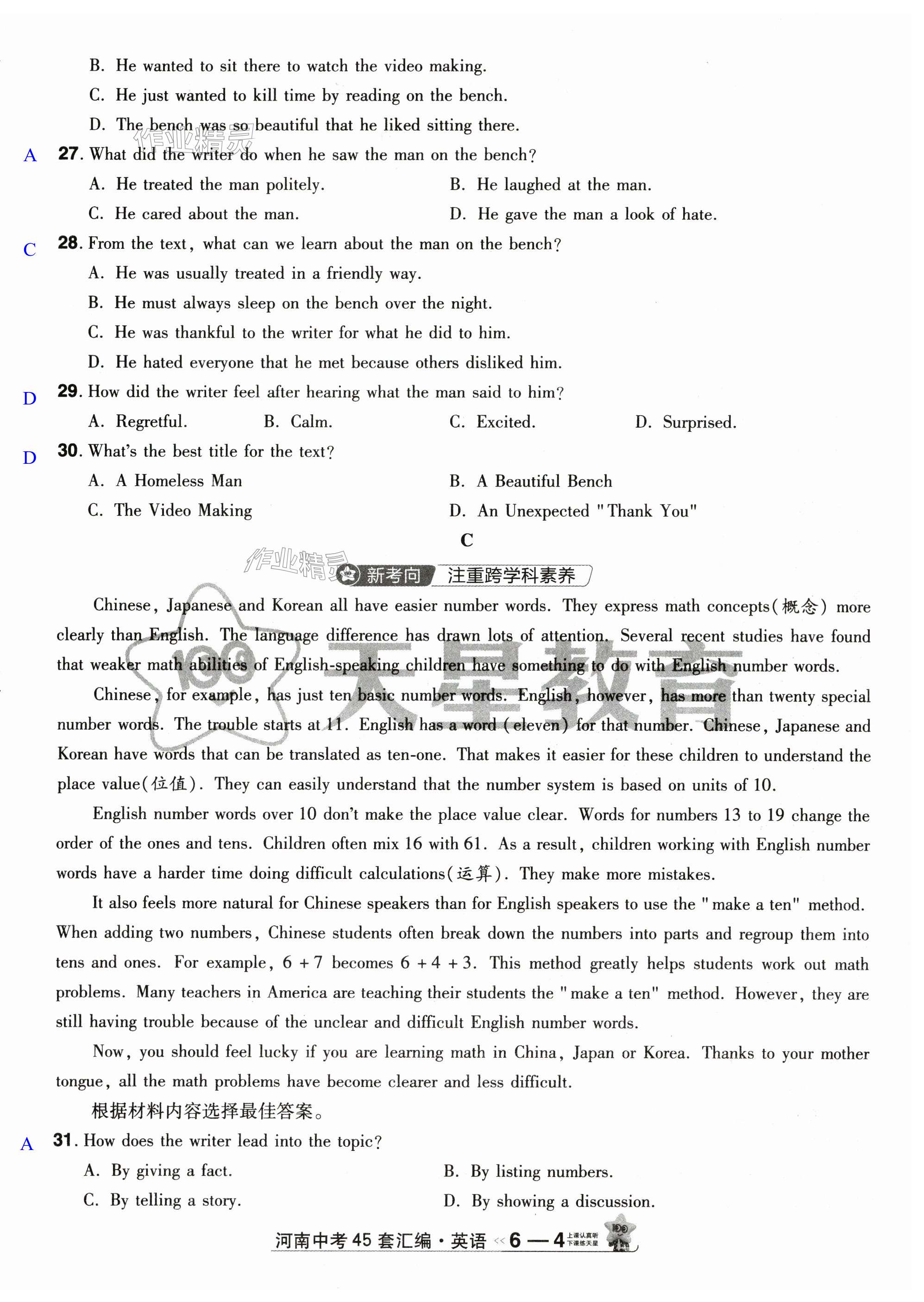注:目前有些书本章节名称可能整理的还不是很完善,但都是按照顺序排列的,请同学们按照顺序仔细查找。练习册 2025年金考卷中考45套汇编英语人教版河南专版 答案主要是用来给同学们做完题方便对答案用的,请勿直接抄袭。