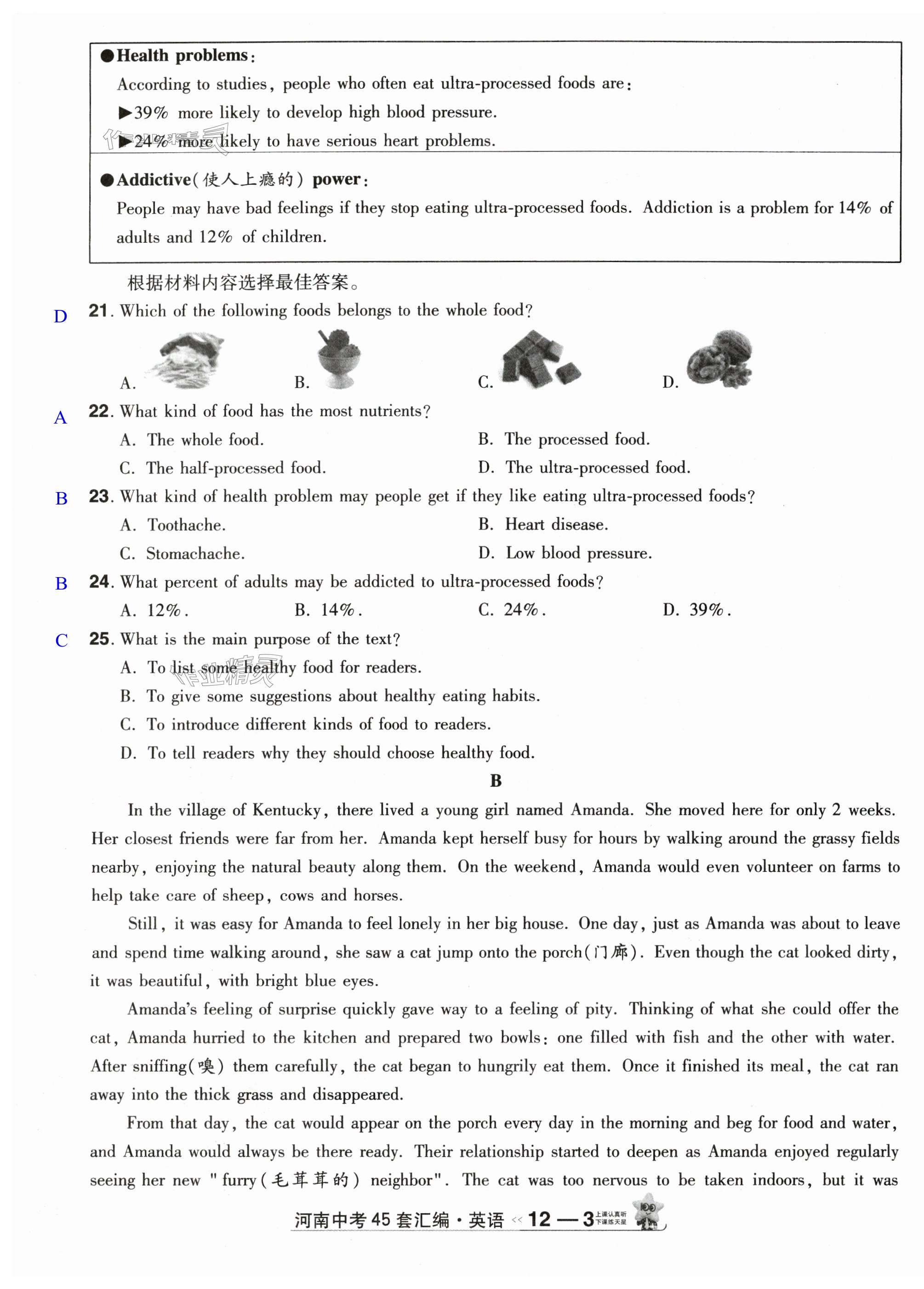 注:目前有些书本章节名称可能整理的还不是很完善,但都是按照顺序排列的,请同学们按照顺序仔细查找。练习册 2025年金考卷中考45套汇编英语人教版河南专版 答案主要是用来给同学们做完题方便对答案用的,请勿直接抄袭。