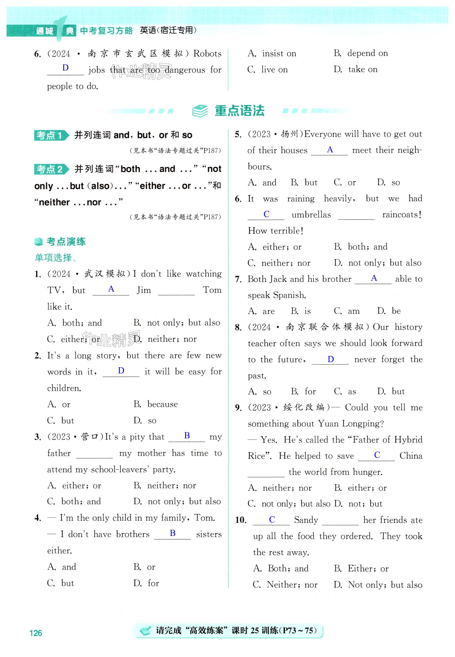 注:目前有些书本章节名称可能整理的还不是很完善,但都是按照顺序排列的,请同学们按照顺序仔细查找。练习册 2025年通城1典中考复习方略英语宿迁专版 答案主要是用来给同学们做完题方便对答案用的,请勿直接抄袭。