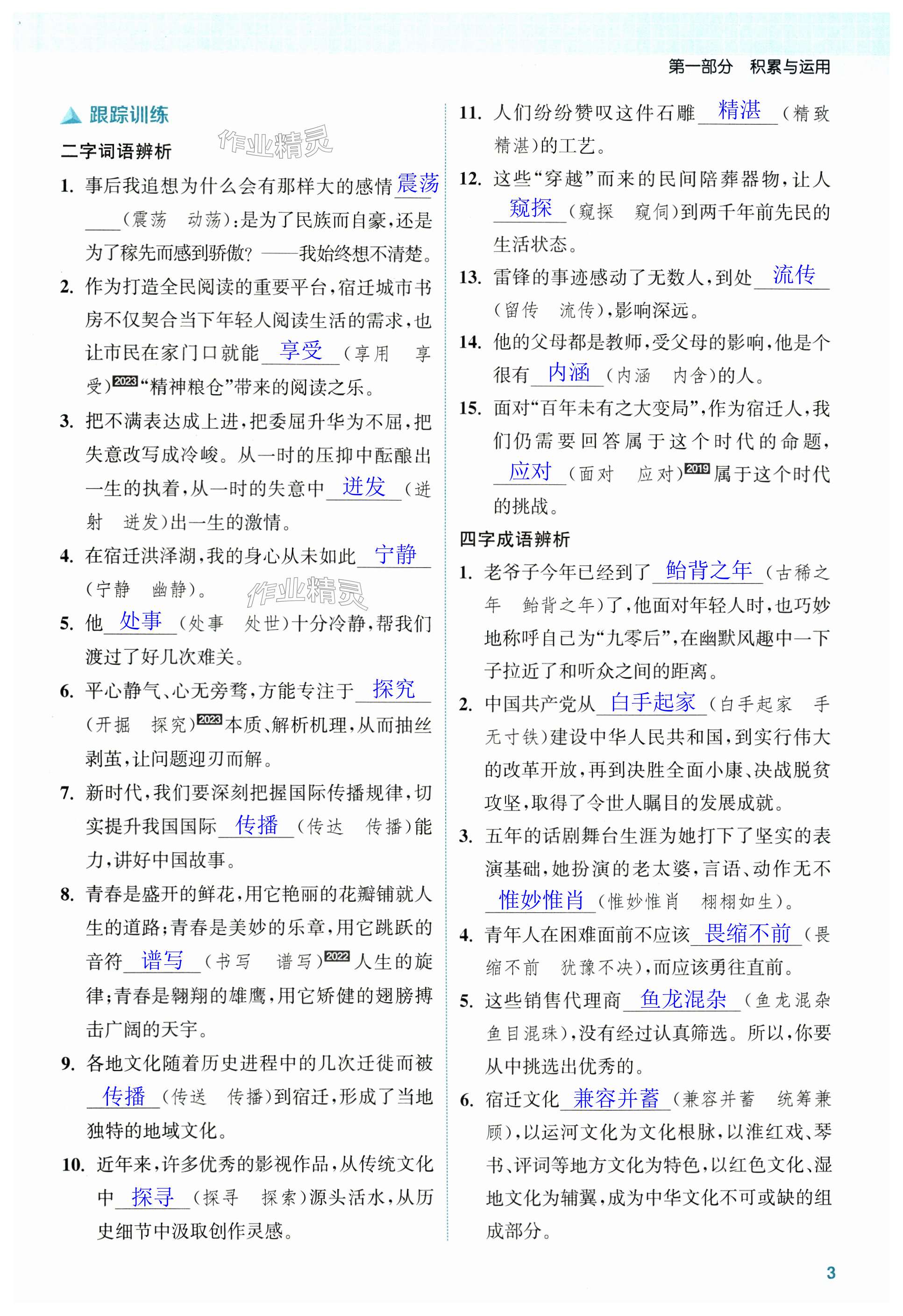 注:目前有些书本章节名称可能整理的还不是很完善,但都是按照顺序排列的,请同学们按照顺序仔细查找。练习册 2025年通城1典中考复习方略语文宿迁专版 答案主要是用来给同学们做完题方便对答案用的,请勿直接抄袭。