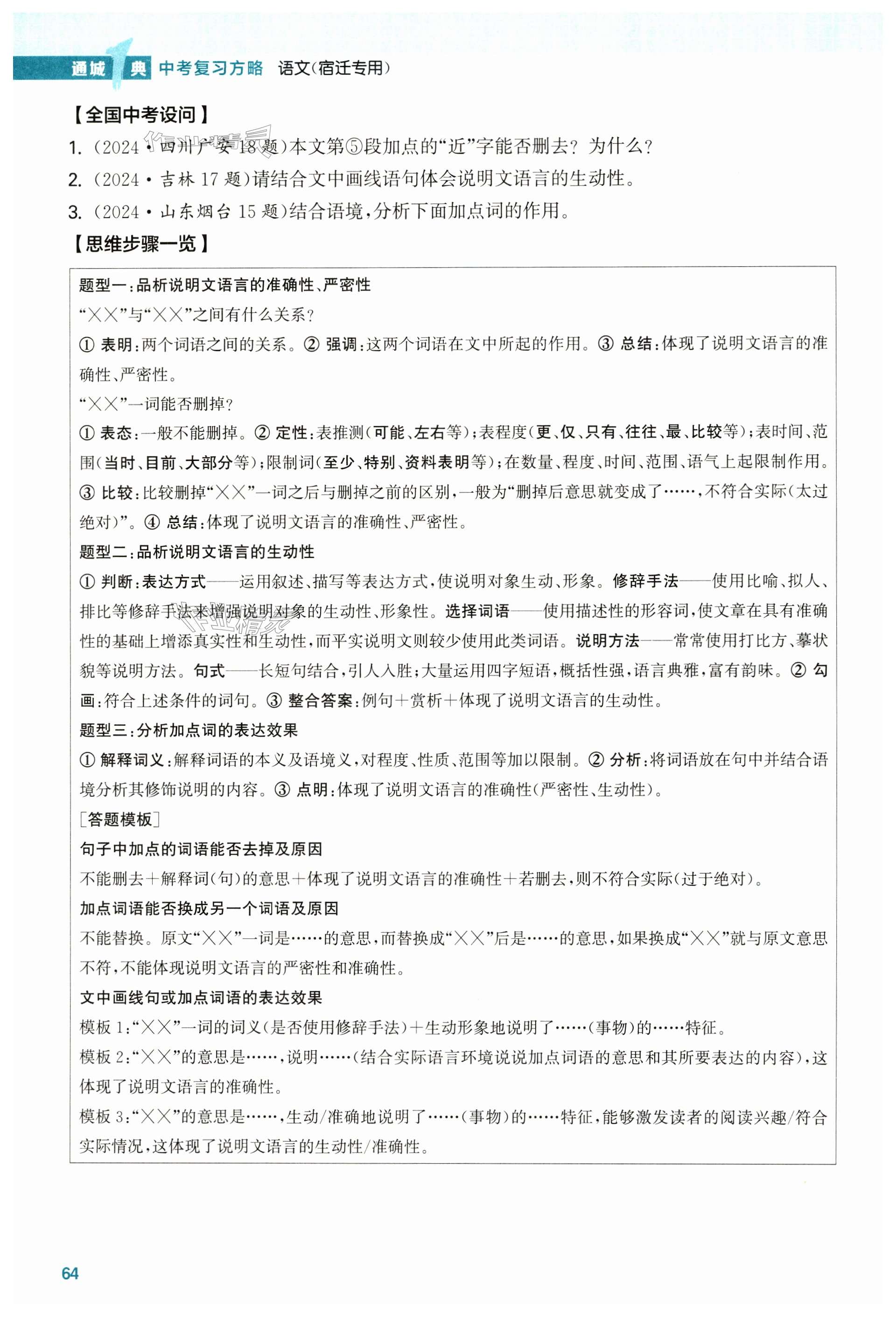 注:目前有些书本章节名称可能整理的还不是很完善,但都是按照顺序排列的,请同学们按照顺序仔细查找。练习册 2025年通城1典中考复习方略语文宿迁专版 答案主要是用来给同学们做完题方便对答案用的,请勿直接抄袭。