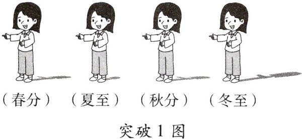 突破 1 [2024·吉林]家住杭州的小梅同学,在二分二至日的正午做了影子长短变化的实验,并记录下来。读图,完成 1~2 题。
