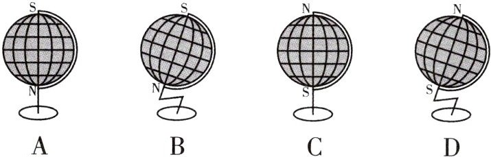 1. 同学们经过反复调整制作好的地球仪,正确的是 ( )
