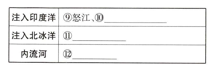 (1)外流河:大多分布在气候较湿润的**东部季风区**,影响水量变化的因素是**降水**。