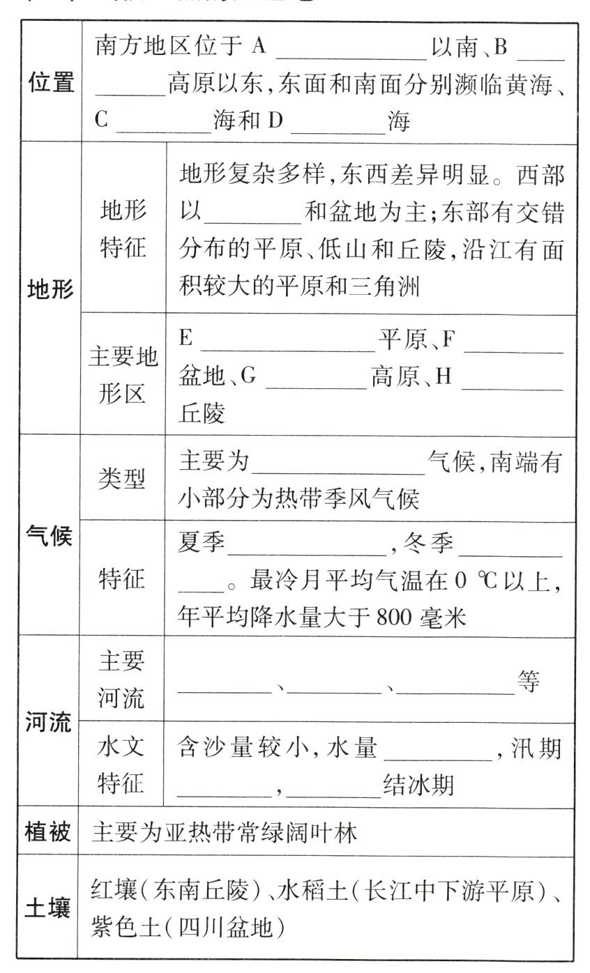 秦岭 - 淮河@@青藏@@东南@@高原@@长江中下游@@四川@@云贵@@东南@@亚热带季风@@高温多雨@@温暖湿润@@澜沧江@@大@@长