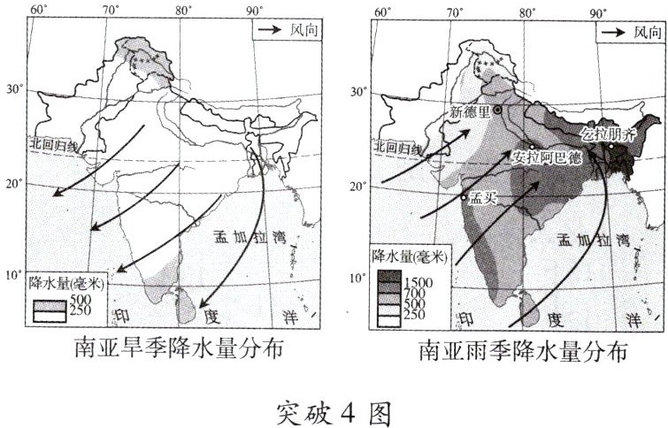 突破 4 [2024·泰安]印度的气候深受季风影响,读图判断下列叙述正确的是 ( )