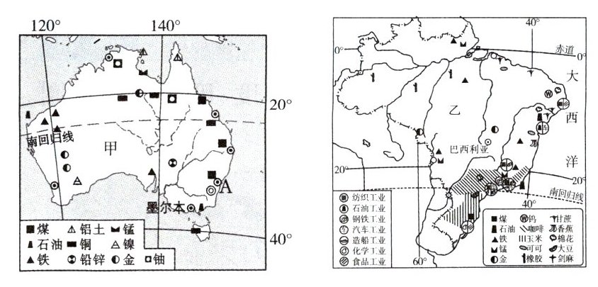 12. 从原料的角度来看,贝洛奥里藏特、里约热内卢和圣保罗所在的三角地区最适宜发展的工业部门是 ( )