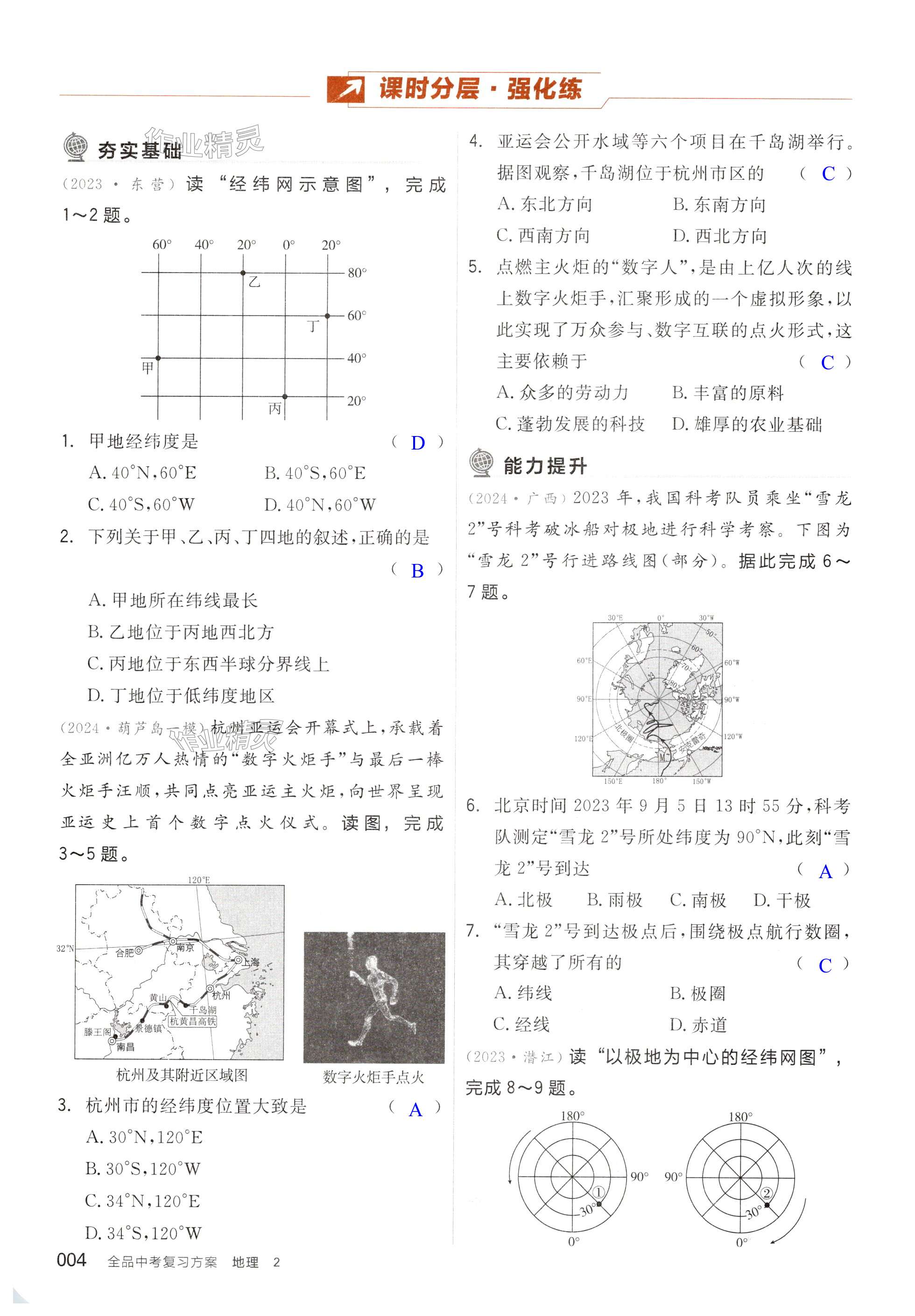 注:目前有些书本章节名称可能整理的还不是很完善,但都是按照顺序排列的,请同学们按照顺序仔细查找。练习册 2025年全品中考复习方案地理连云港专版 答案主要是用来给同学们做完题方便对答案用的,请勿直接抄袭。