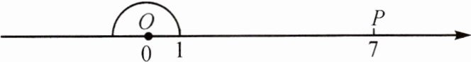 16. 如图,数轴上半径为$1$的半圆$O$从原点开始以每秒$1$个单位长度的速度向右运动,同时,距原点右边$7$个单位长度有一点$P$以每秒$2$个单位长度的速度向左运动,经过 秒后,点$P$在$\odot O$上。