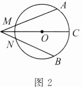 (2)如果点 P 由圆上运动到圆外,PC 过圆心,如图 2,是否仍有 PA = PB?为什么?