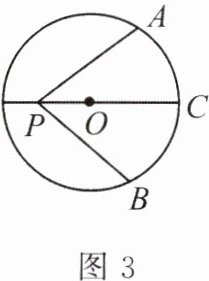 (3)如图 3,如果点 P 由圆上运动到圆内,那么 PA = PB是否仍然成立?不用说明理由.