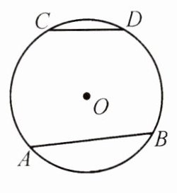 11. 如图,在⊙O 中,$\overset{\frown}{AB}$ = 2$\overset{\frown}{CD}$,试判断 AB 与 2CD 的大小关系,并说明理由.