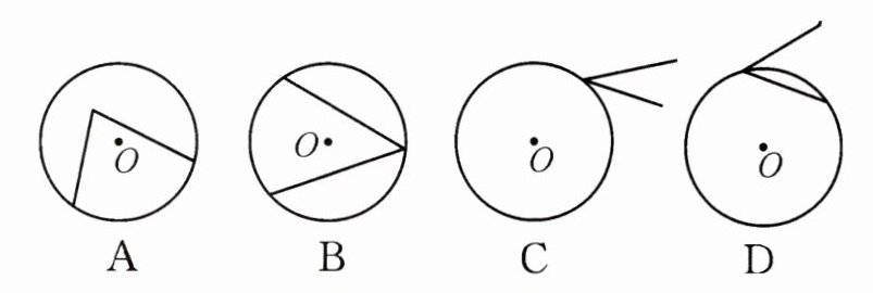 1. 下列图形中的角是圆周角的是 ( )