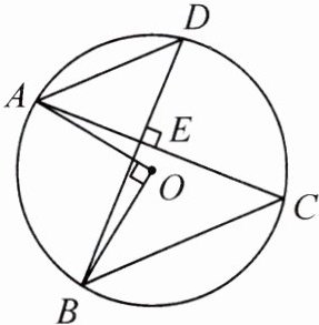 证明:因为OA⊥OB,所以∠AOB = 90°。所以∠C = ∠D = $\frac{1}{2}$∠AOB = 45°。因为AC⊥BD,所以∠AED = 90°,所以∠DAE = 45°。所以∠C = ∠DAE。所以AD//BC。