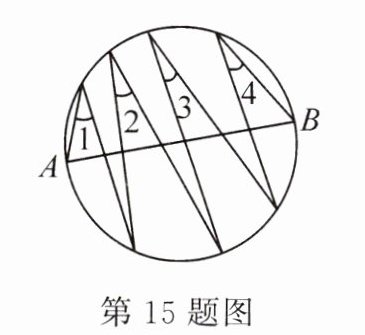15.【整体思想】(2024·连云港)如图,AB 是圆的直径,∠1,∠2,∠3,∠4 的顶点均在 AB 上方的圆弧上,∠1,∠4 的一边分别经过点 A,B,则∠1 + ∠2 + ∠3 + ∠4 = ______°.