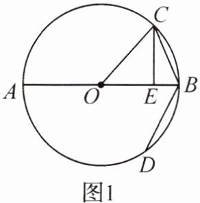 (1)如图1,若BE = 1,CE = $\sqrt{5}$,求⊙O的半径;