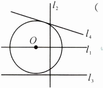 8. 平面上$\odot O$与四条直线$l_1$,$l_2$,$l_3$,$l_4$的位置关系如图所示.若$\odot O$的半径为2 cm,且点$O$到其中一条直线的距离为2.2 cm,则这条直线是( )