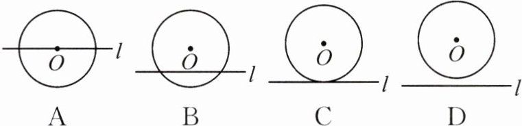 2. 已知$\odot O$的半径为10,圆心$O$到直线$l$的距离为6,则反映直线$l$与$\odot O$的位置关系的图形是( )