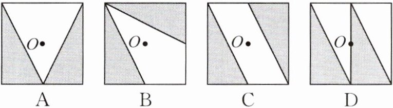 2.(2024·广州)下列图案中,点 O 为正方形的中心,阴影部分的两个三角形全等,则阴影部分的两个三角形关于点 O 成中心对称的是 ( )