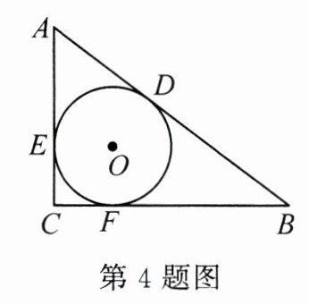 4. 如图,在△ABC中,AC = 3,BC = 4,∠C = 90°,⊙O为△ABC的内切圆,与三边的切点分别为D,E,F,则⊙O的面积为 ( )