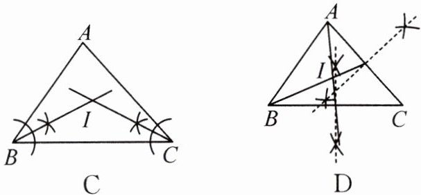 4. 用无刻度的直尺和圆规确定△ABC的内心,下列作法正确的是 ( )